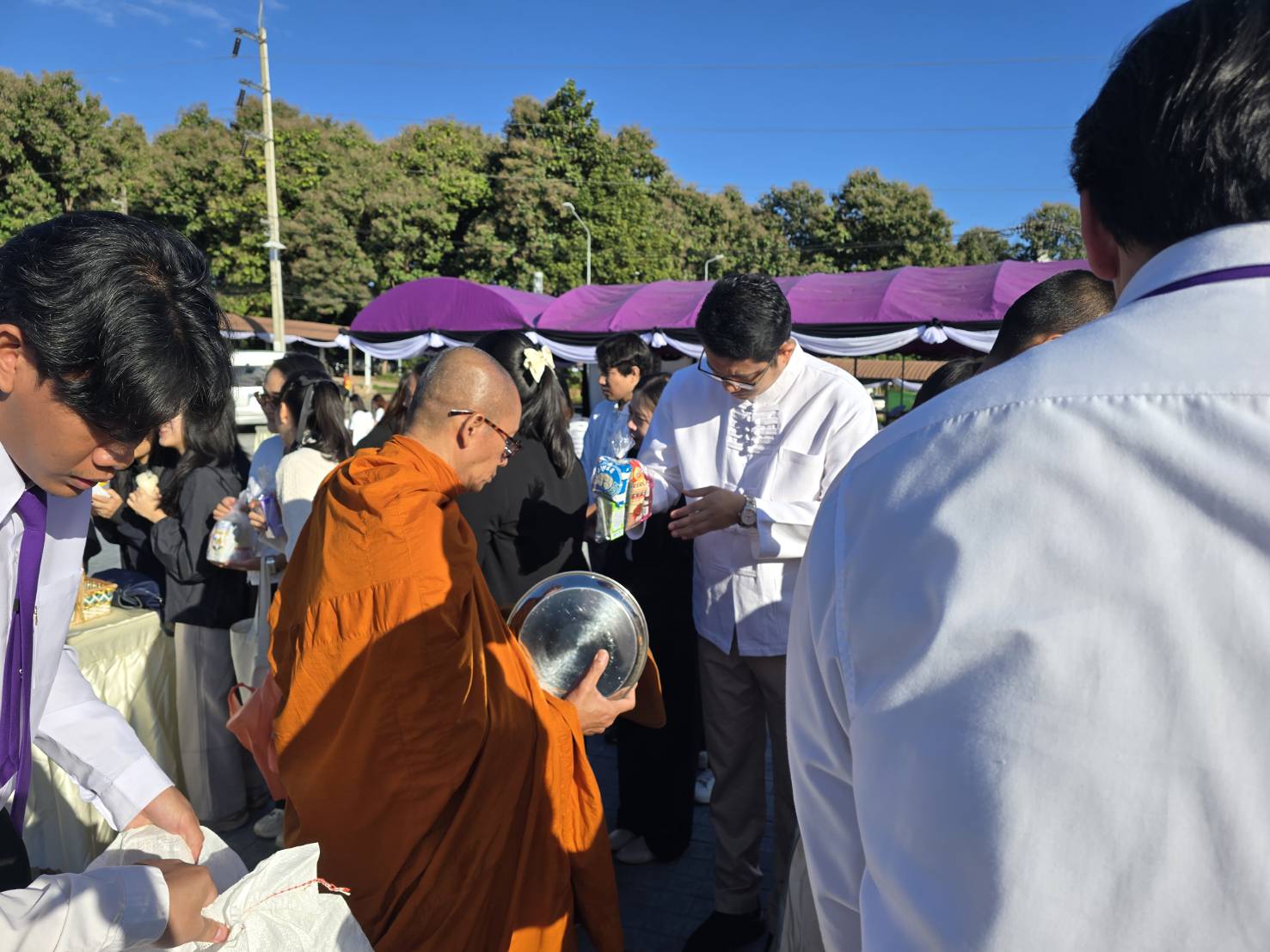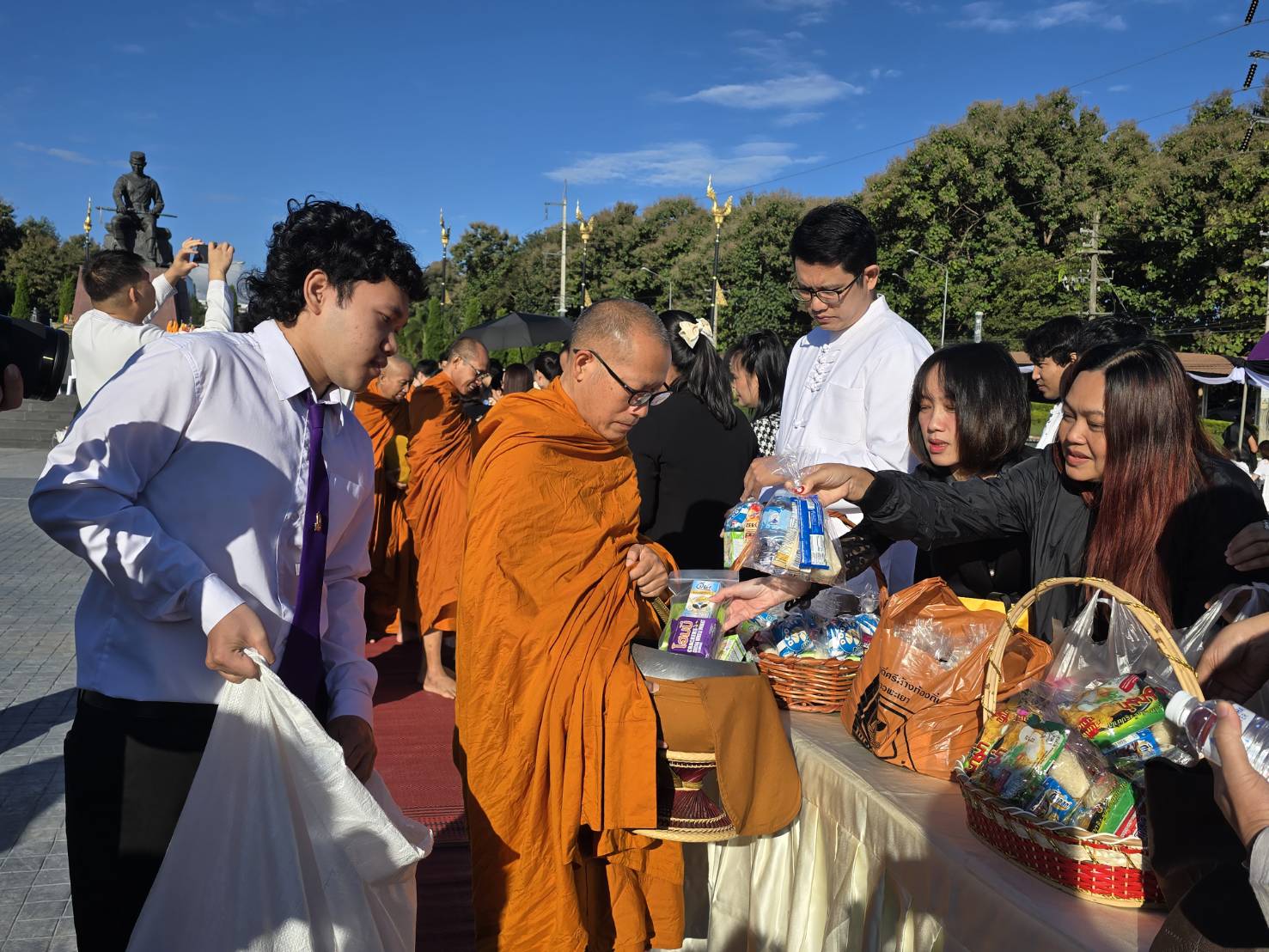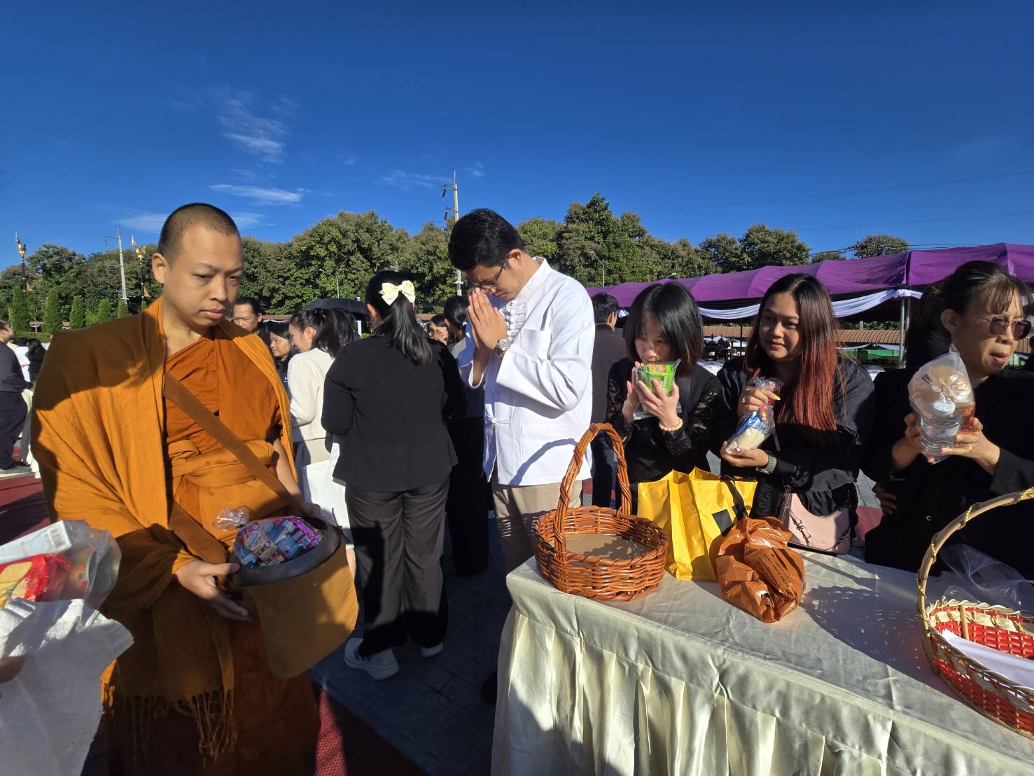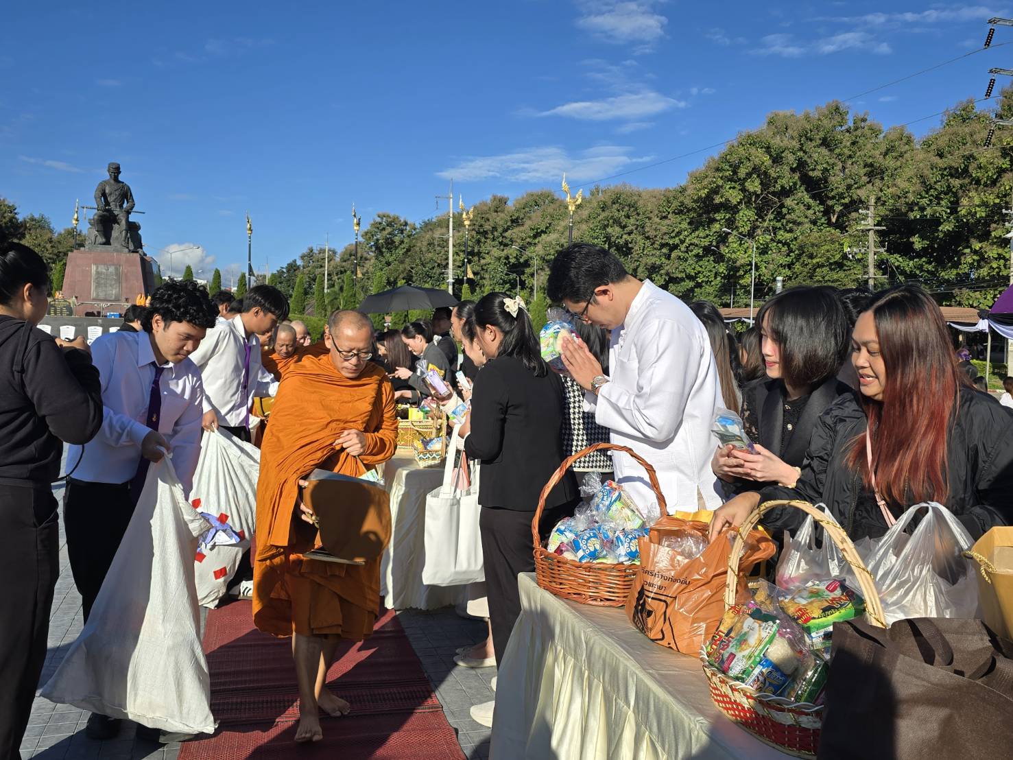 ในการนี้ คณะเทคโนโลยีสารสนเทศและการสื่อสาร มหาวิทยาลัยพะเยา ได้ร่วมถวายสังฆทาน และตักบาตรข้าวสารอาหารแห้ง พระสงฆ์ จำนวน 8 รูป โดยมีผู้บริหารมหาวิทยาลัย บุคลากร และนิสิต มหาวิทยาลัยพะเยา ร่วมพิธีด้วยน้อมสำนึกในพระมหากรุณาธิคุณโดยพร้อมเพรียงกัน