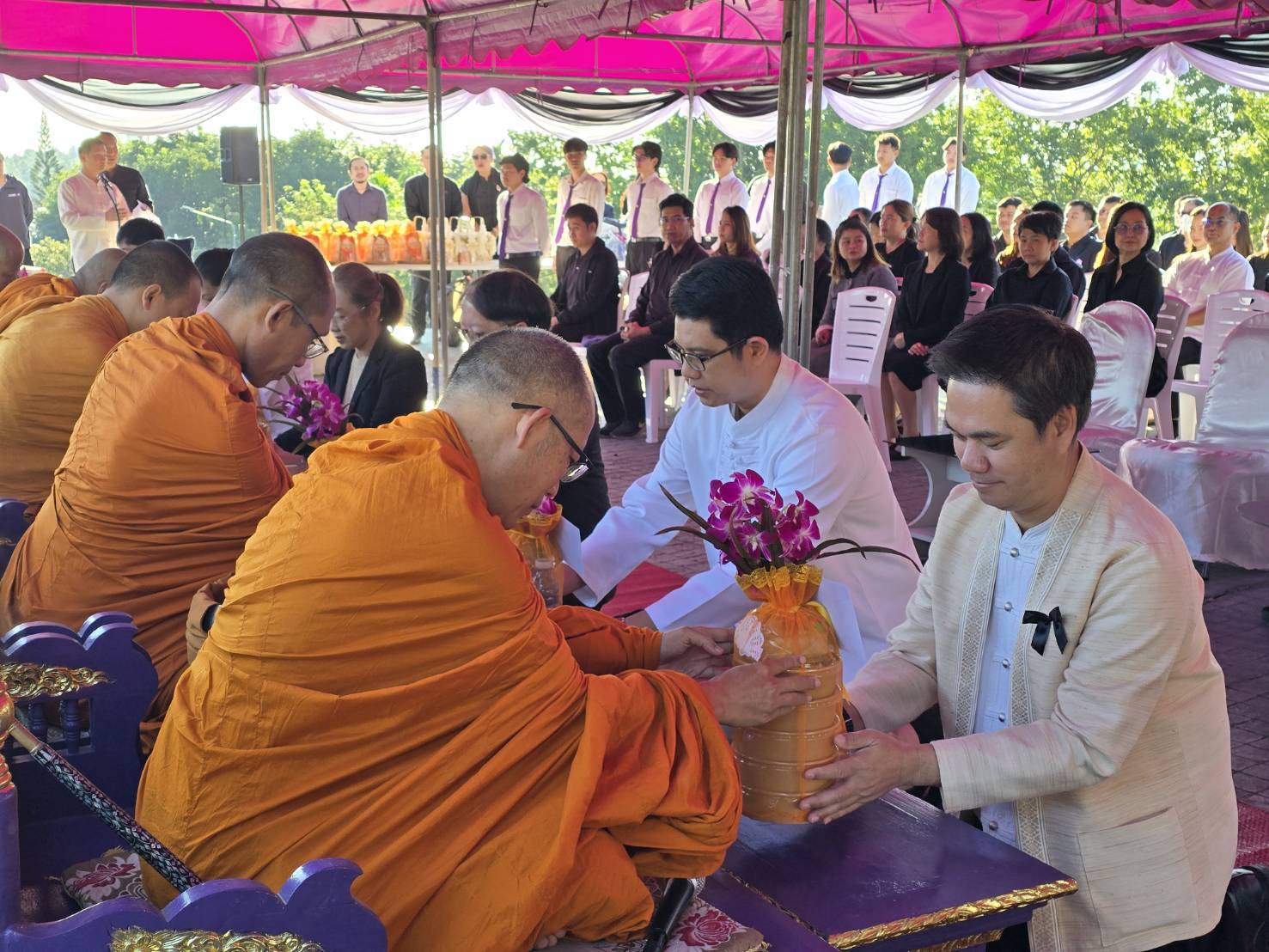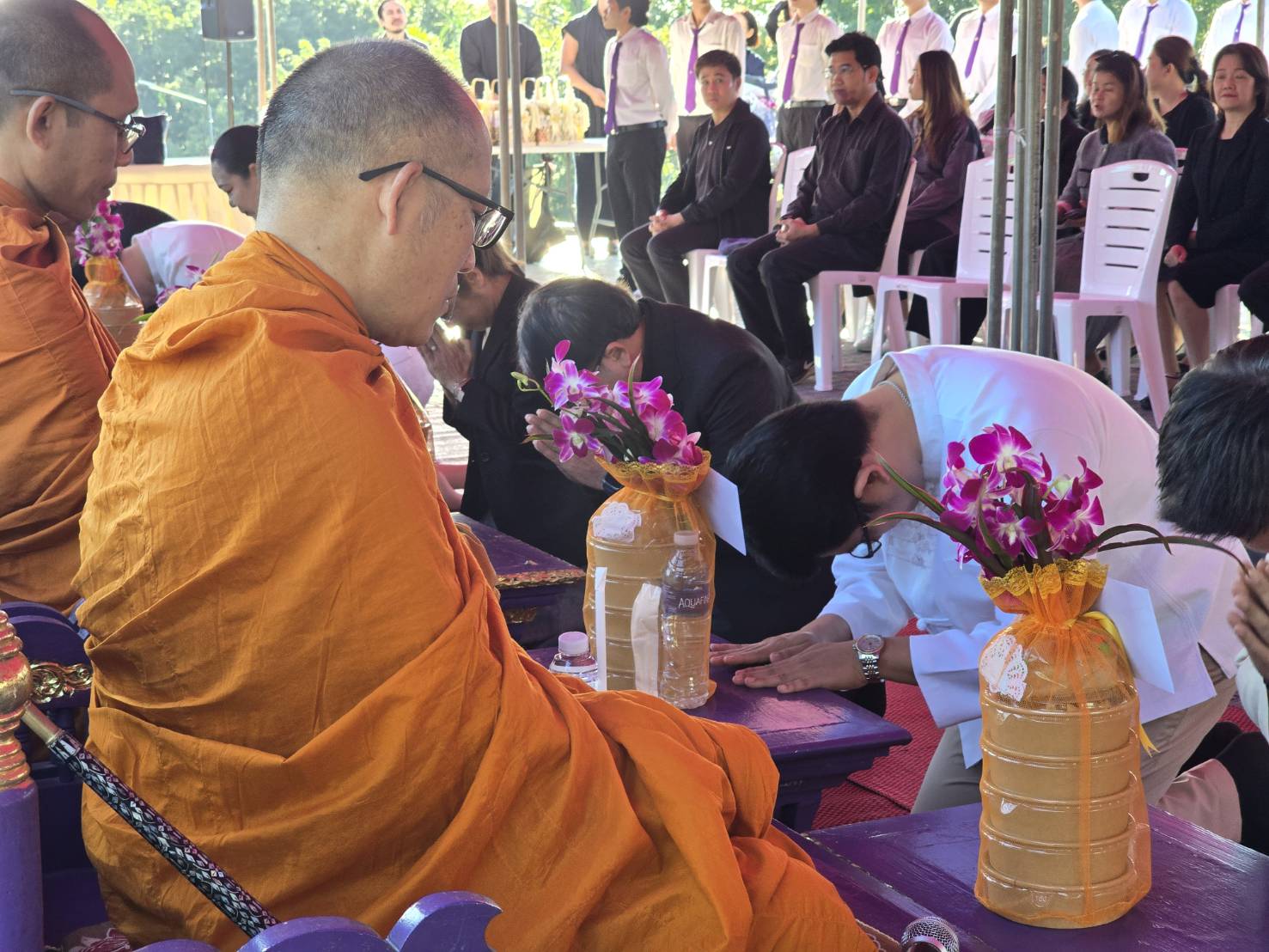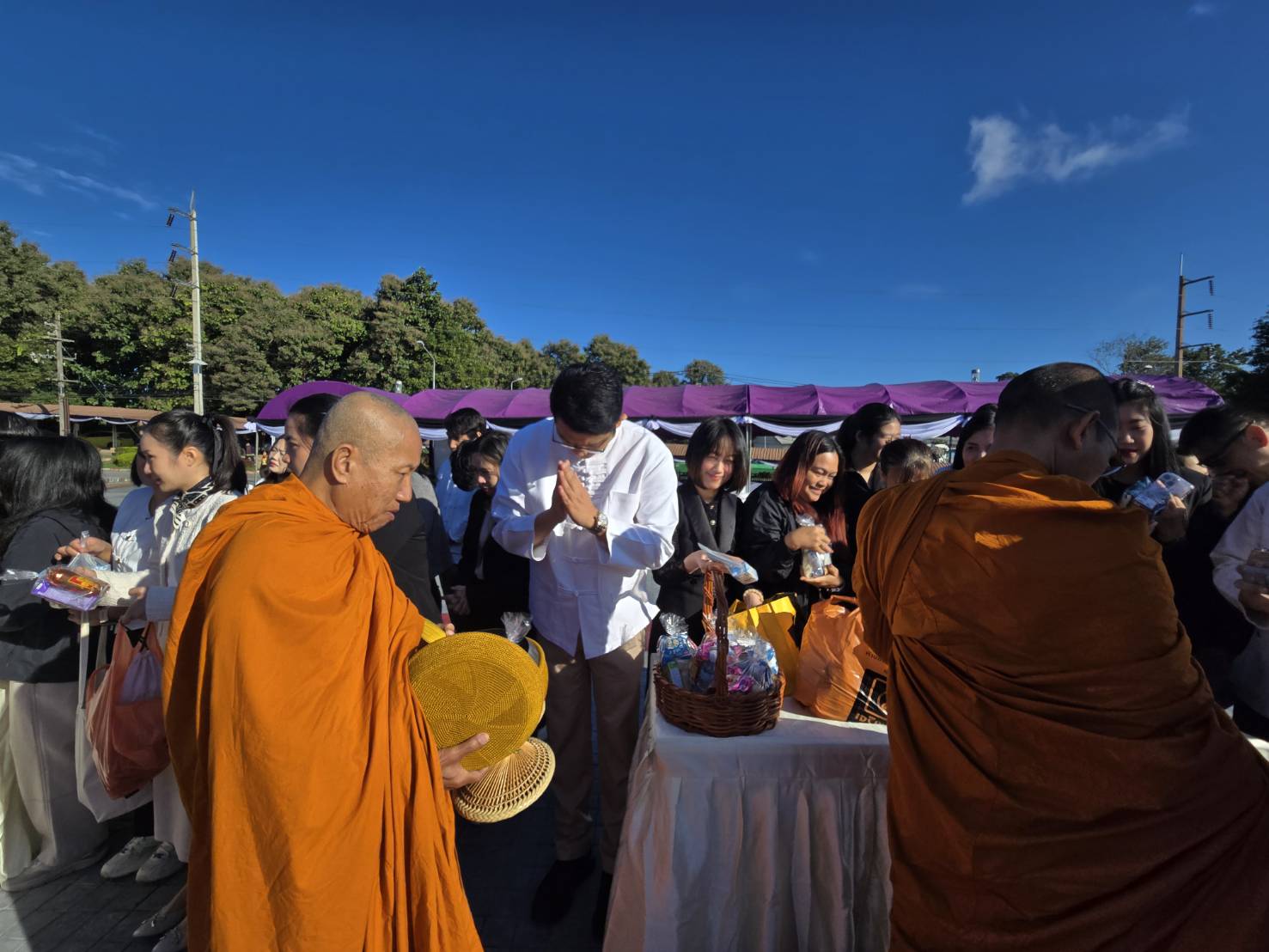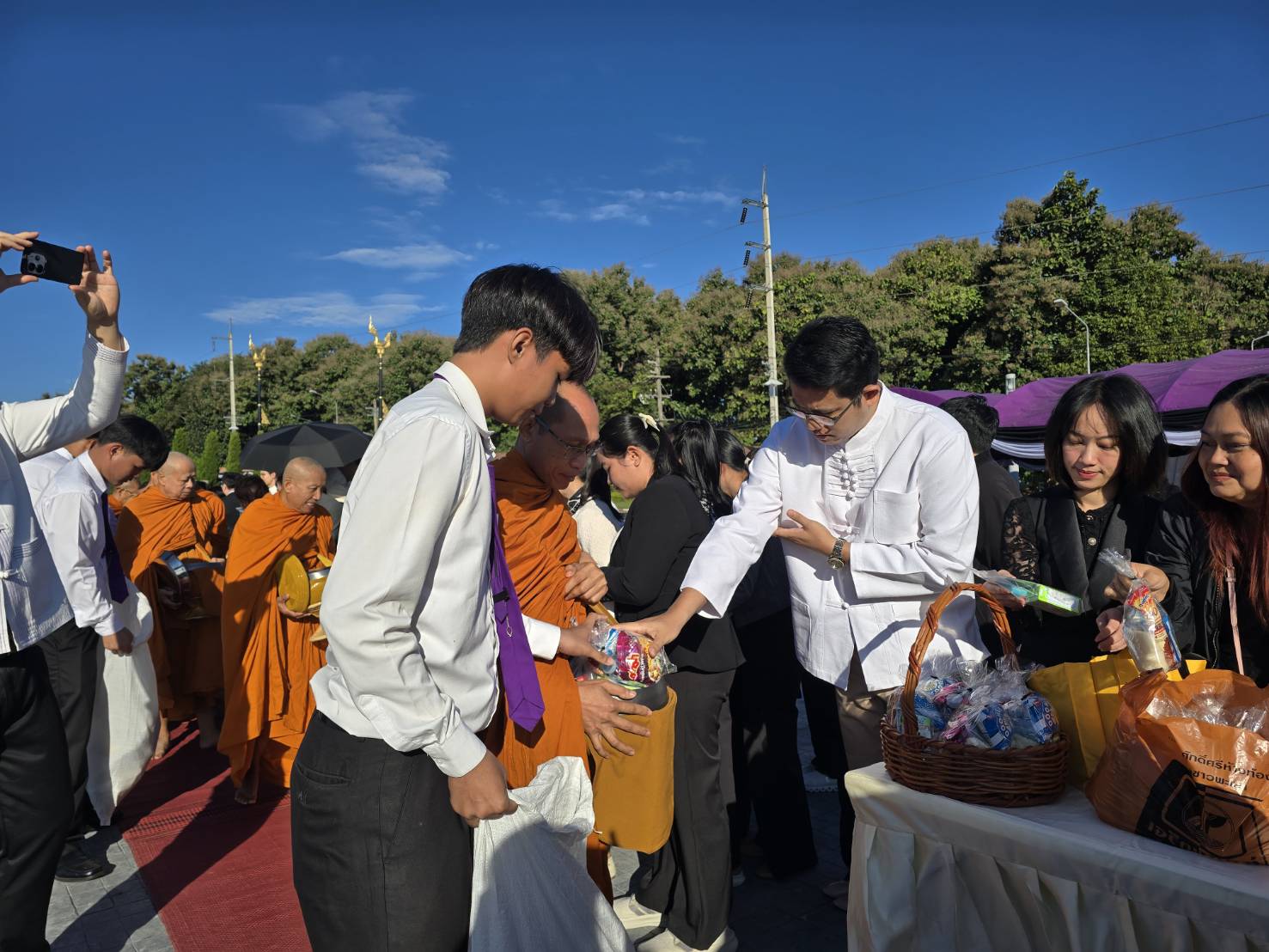 ในการนี้ คณะเทคโนโลยีสารสนเทศและการสื่อสาร มหาวิทยาลัยพะเยา ได้ร่วมถวายสังฆทาน และตักบาตรข้าวสารอาหารแห้ง พระสงฆ์ จำนวน 8 รูป โดยมีผู้บริหารมหาวิทยาลัย บุคลากร และนิสิต มหาวิทยาลัยพะเยา ร่วมพิธีด้วยน้อมสำนึกในพระมหากรุณาธิคุณโดยพร้อมเพรียงกัน