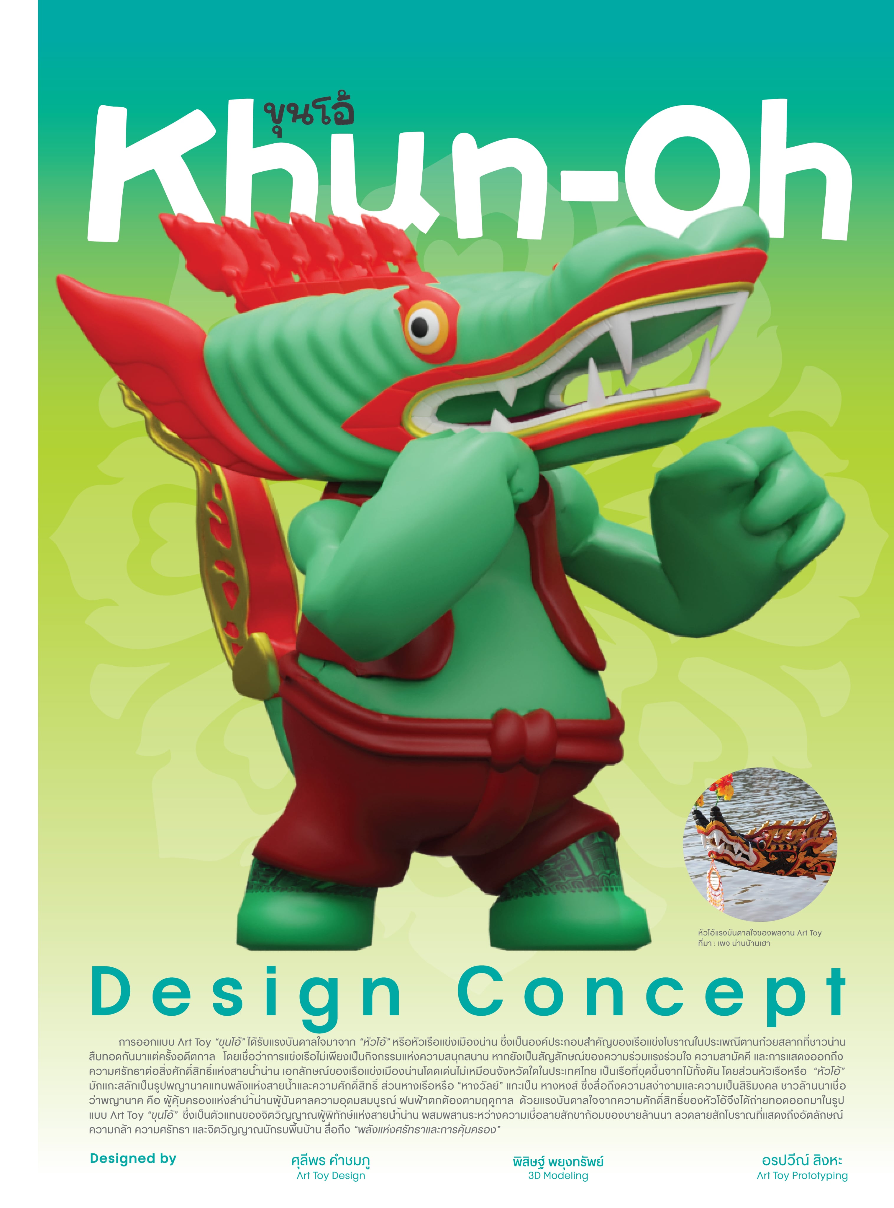 การประกวดครั้งนี้มีผลงานส่งเข้าร่วมทั้งหมด 29 ชิ้น จากศิลปินทั่วประเทศ โดยผลงานที่ได้รับรางวัลคือ “ขุนโอ้ (Khun-Oh)”อาร์ตทอยที่ได้รับแรงบันดาลใจจาก หัวโอ หรือหัวเรือแข่งเมืองน่าน ซึ่งเป็นองค์ประกอบสำคัญของการแข่งเรือโบราณในประเพณี ตานก๋วยสลาก ของชาวจังหวัดน่าน ที่สืบทอดกันมาตั้งแต่อดีตกาล การแข่งเรือไม่เพียงเป็นกิจกรรมแห่งความสนุกสนาน หากยังเป็นสัญลักษณ์ของความร่วมแรงร่วมใจ ความสามัคคี และการแสดงออกถึงความศรัทธาต่อสิ่งศักดิ์สิทธิ์แห่งสายน้ำน่าน เอกลักษณ์ของเรือแข่งเมืองน่าน มีความโดดเด่นเฉพาะตัว เนื่องจากเป็นเรือที่ขุดจากไม้ทั้งต้น โดยส่วนหัวเรือหรือหัวโอ มักแกะสลักเป็นรูปพญานาค สื่อถึงพลังแห่งสายน้ำและความศักดิ์สิทธิ์ ขณะที่ส่วนหางเรือหรือหางหวั่นแก้ แกะสลักเป็นหางหงส์ แทนความสง่างามและความเป็นสิริมงคล ตามความเชื่อของชาวล้านนา พญานาคคือผู้คุ้มครองลำน้ำน่าน ผู้บันดาลความอุดมสมบูรณ์และความสมดุลของธรรมชาติ แรงบันดาลใจดังกล่าวถูกถ่ายทอดออกมาในรูปแบบของอาร์ตทอย “ขุนโอ้” ซึ่งเป็นตัวแทนของจิตวิญญาณผู้พิทักษ์แห่งสายน้ำน่าน โดยผสมผสานลวดลาย สักขาลาย หรือลวดลายสักโบราณของชายล้านนา ที่สะท้อนความกล้า ความศรัทธา และจิตวิญญาณนักรบพื้นบ้าน เพื่อสื่อถึงพลังแห่งการคุ้มครองและความศักดิ์สิทธิ์ในรูปแบบร่วมสมัย