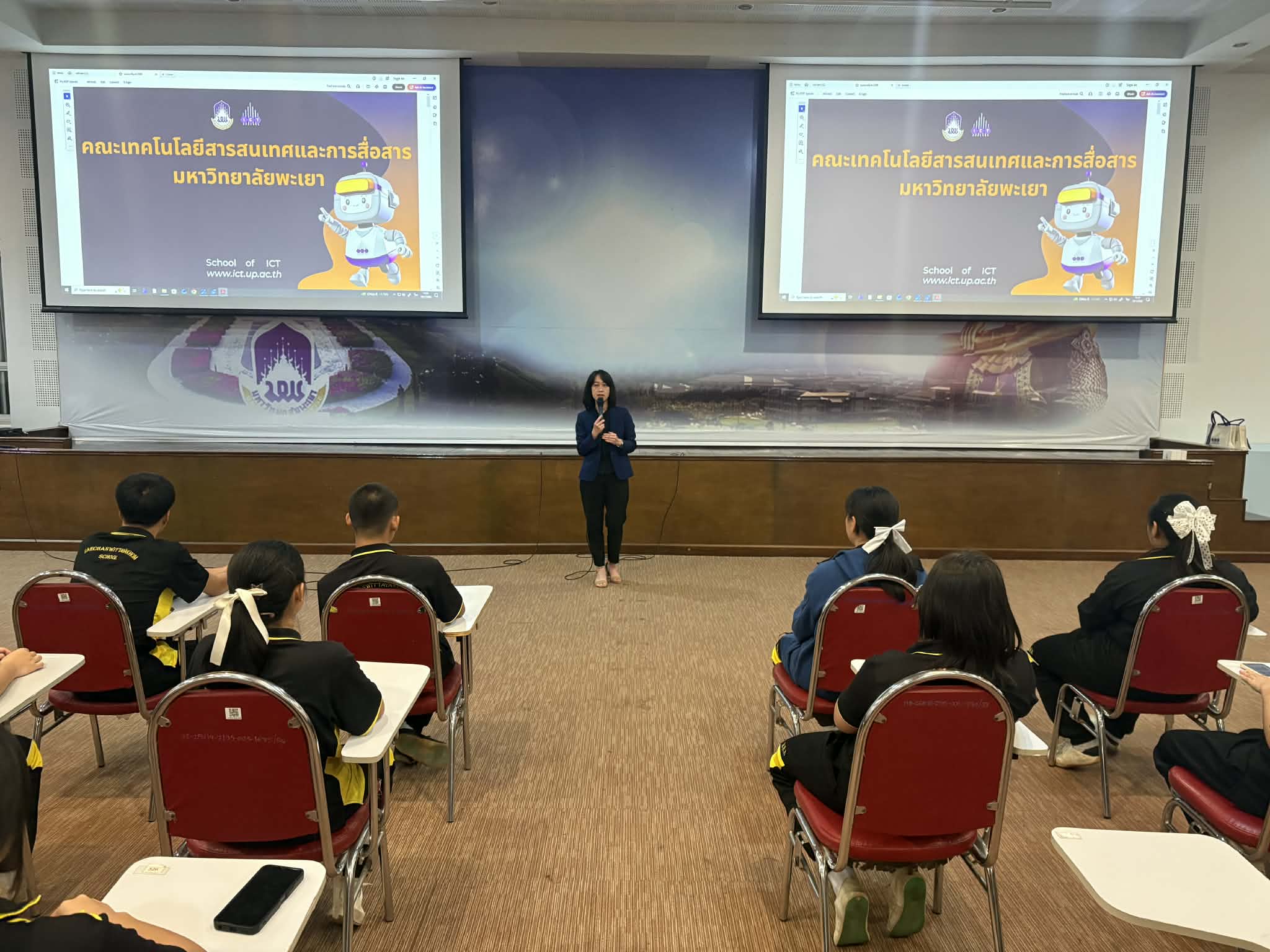 เมื่อวันที่ 19 มกราคม 2569 คณะเทคโนโลยีสารสนเทศและการสื่อสาร มหาวิทยาลัยพะเยา ให้การต้อนรับคณะนักเรียนแผนการเรียนวิทย์–คณิต ระดับชั้นมัธยมศึกษาปีที่ 5 โรงเรียนแม่จันวิทยาคม จำนวน 107 คน ในกิจกรรมทัศนศึกษา ณ ห้องประชุมเมืองพะเยา อาคารคณะเทคโนโลยีสารสนเทศและการสื่อสาร