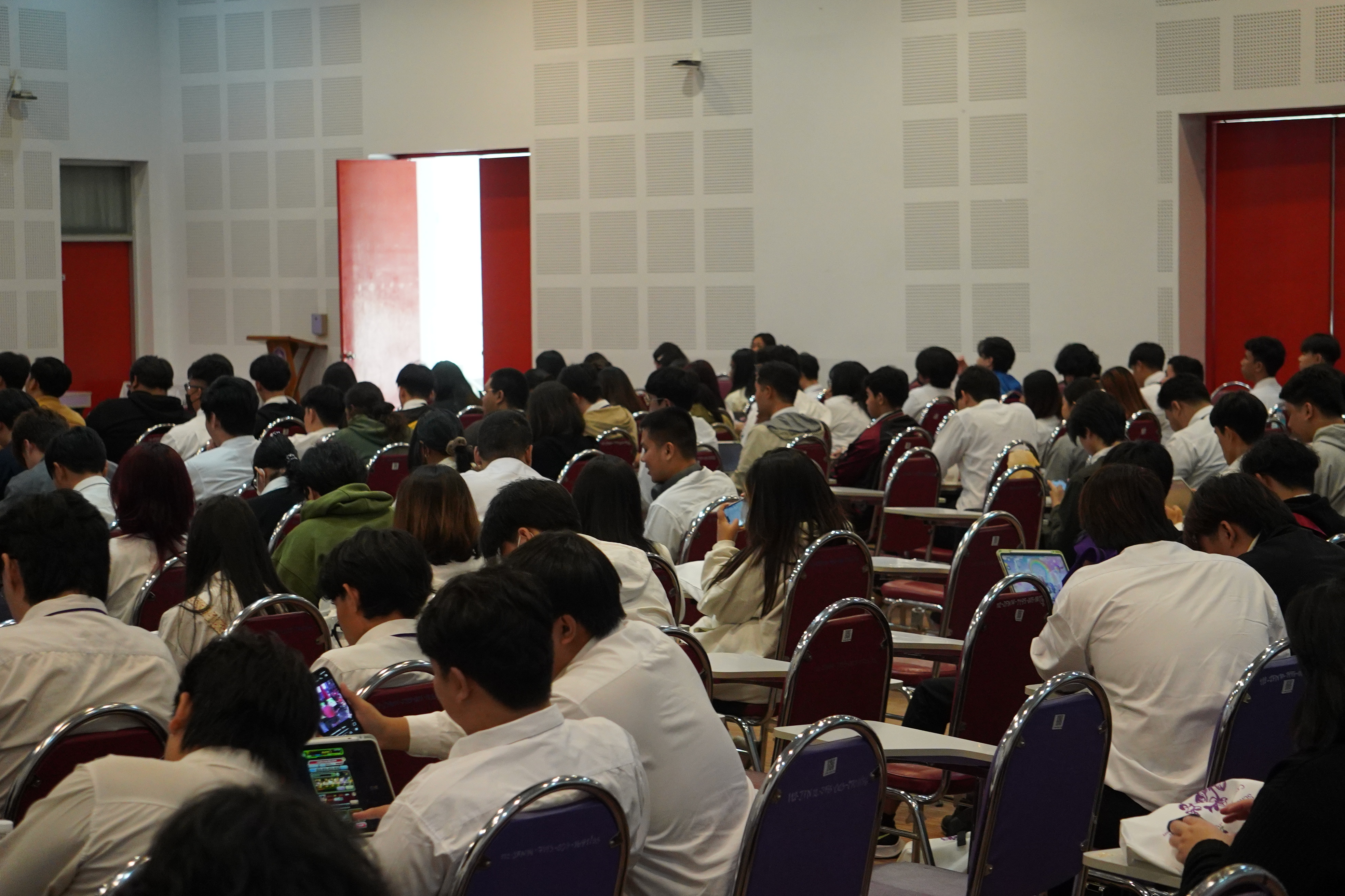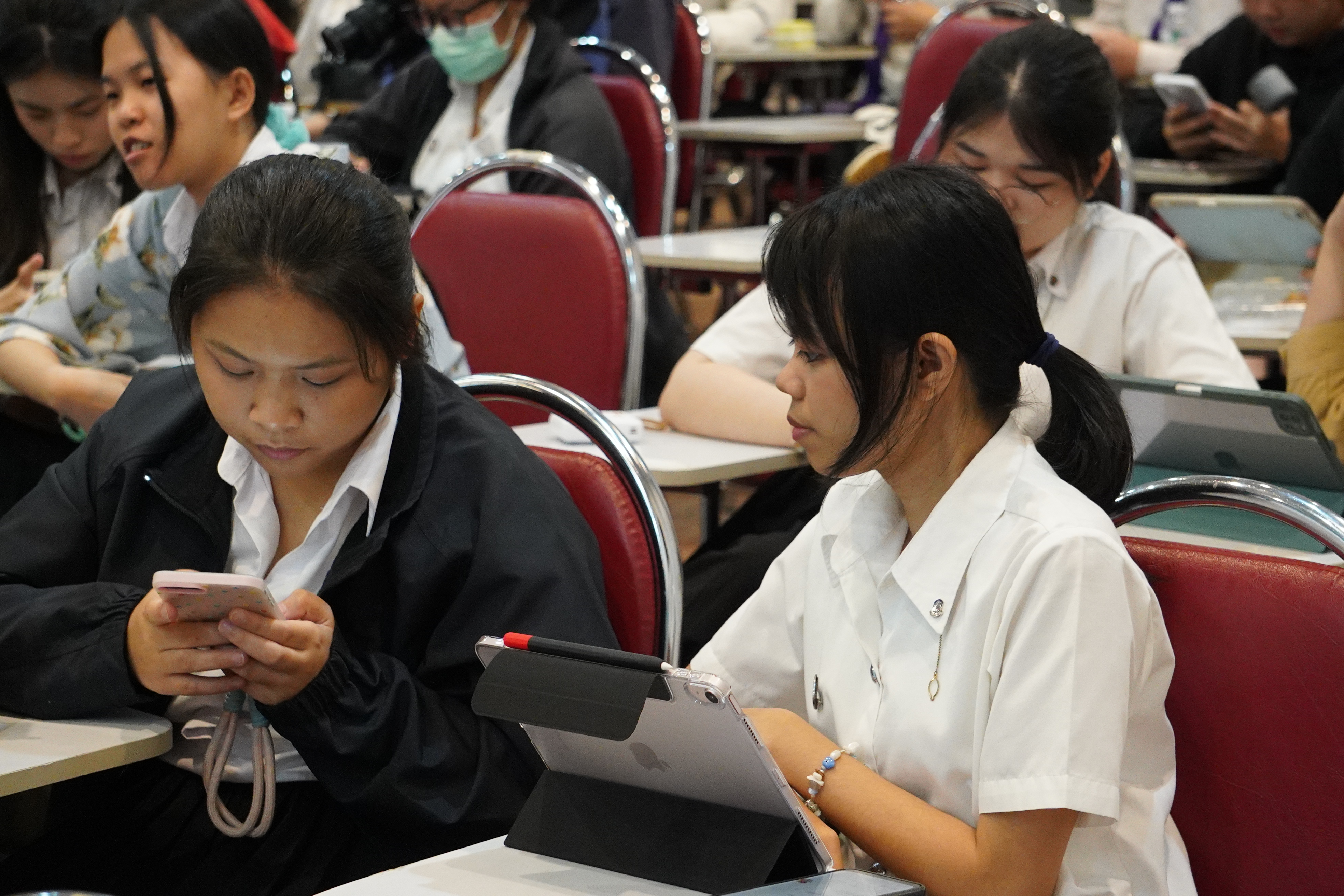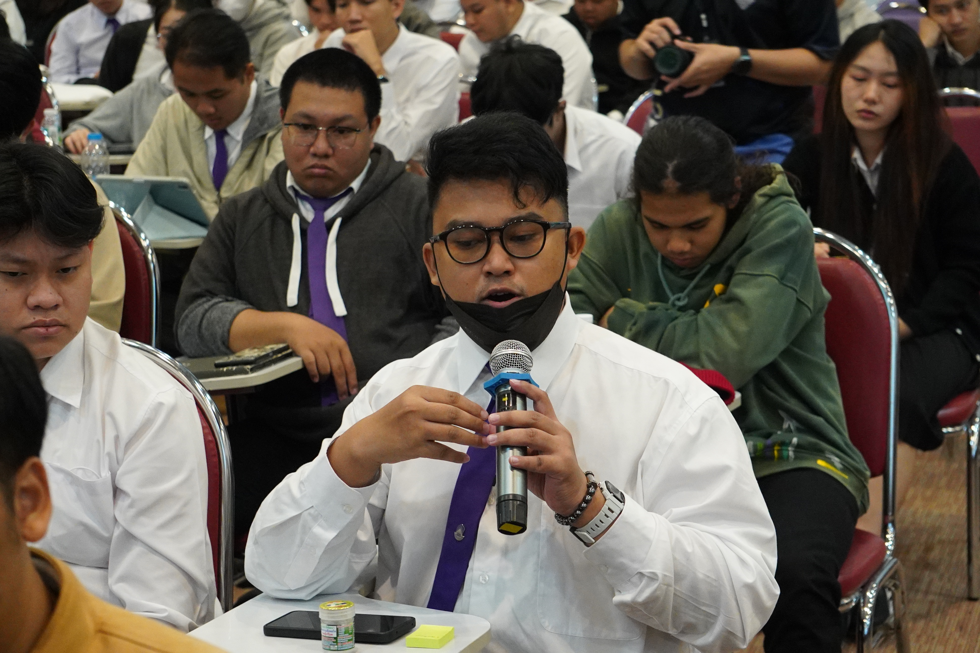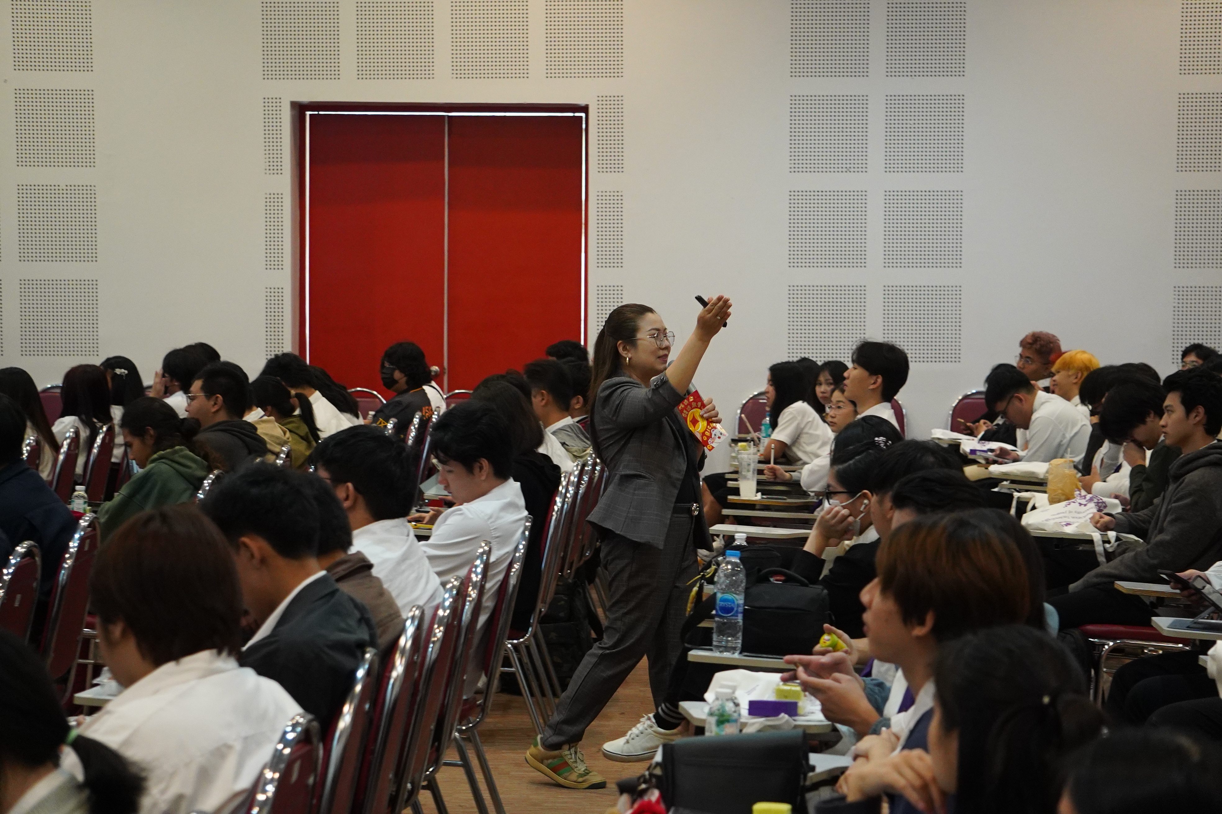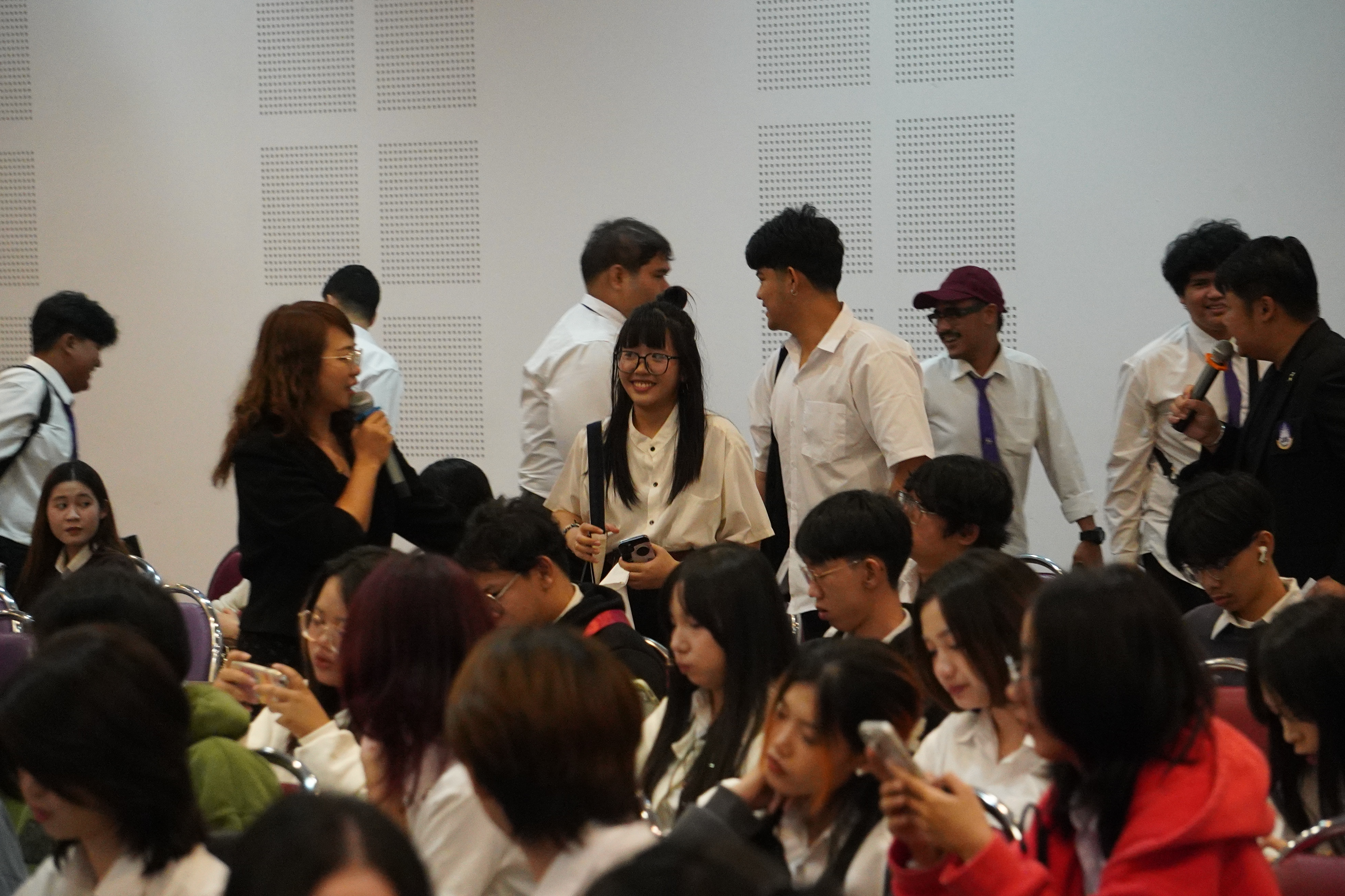 ไฮไลต์สำคัญของกิจกรรม คือ การบรรยายพิเศษเพื่อเตรียมความพร้อมสู่โลกการทำงาน โดยได้รับเกียรติจาก คุณสายสุนี เตชา วิทยากรผู้เชี่ยวชาญด้านการพัฒนาศักยภาพบุคลากรและการเตรียมความพร้อมสู่ตลาดแรงงาน จากบริษัท JOBTOPGUN Thailand ซึ่งเป็นองค์กรชั้นนำด้านการจัดหางานและพัฒนาเส้นทางอาชีพของคนรุ่นใหม่ ซึ่งได้ถ่ายทอดความรู้และประสบการณ์ในหัวข้อ “เตรียมความพร้อมนักศึกษาสู่ตลาดแรงงานยุค AI” และ “การเตรียมความพร้อมการสมัครงานของนิสิตจบใหม่” โดยเน้นการพัฒนาทักษะสำคัญสำหรับการทำงานในยุคปัจจุบัน ทั้งเทคนิคการเขียน Resume การเตรียมตัวสัมภาษณ์งาน รวมถึงการพัฒนา Soft Skills ที่จำเป็นต่อการทำงานในองค์กร