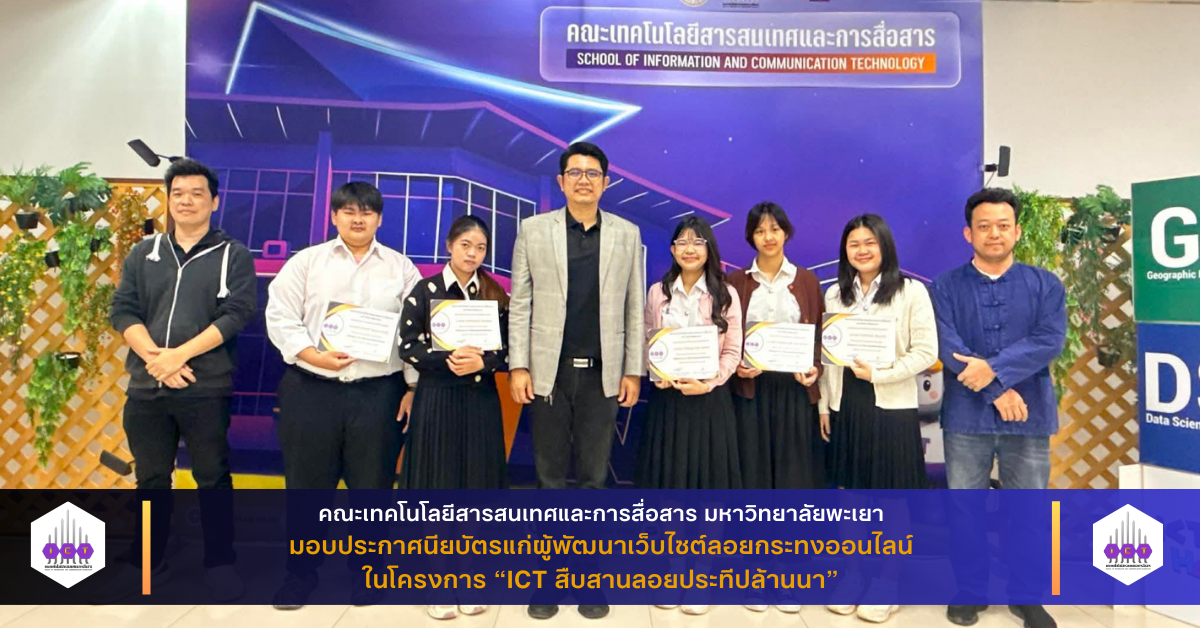 คณะเทคโนโลยีสารสนเทศและการสื่อสาร มหาวิทยาลัยพะเยา มอบประกาศนียบัตรแก่ผู้พัฒนาเว็บไซต์ลอยกระทงออนไลน์ ในโครงการ “ICT สืบสานลอยประทีปล้านนา”