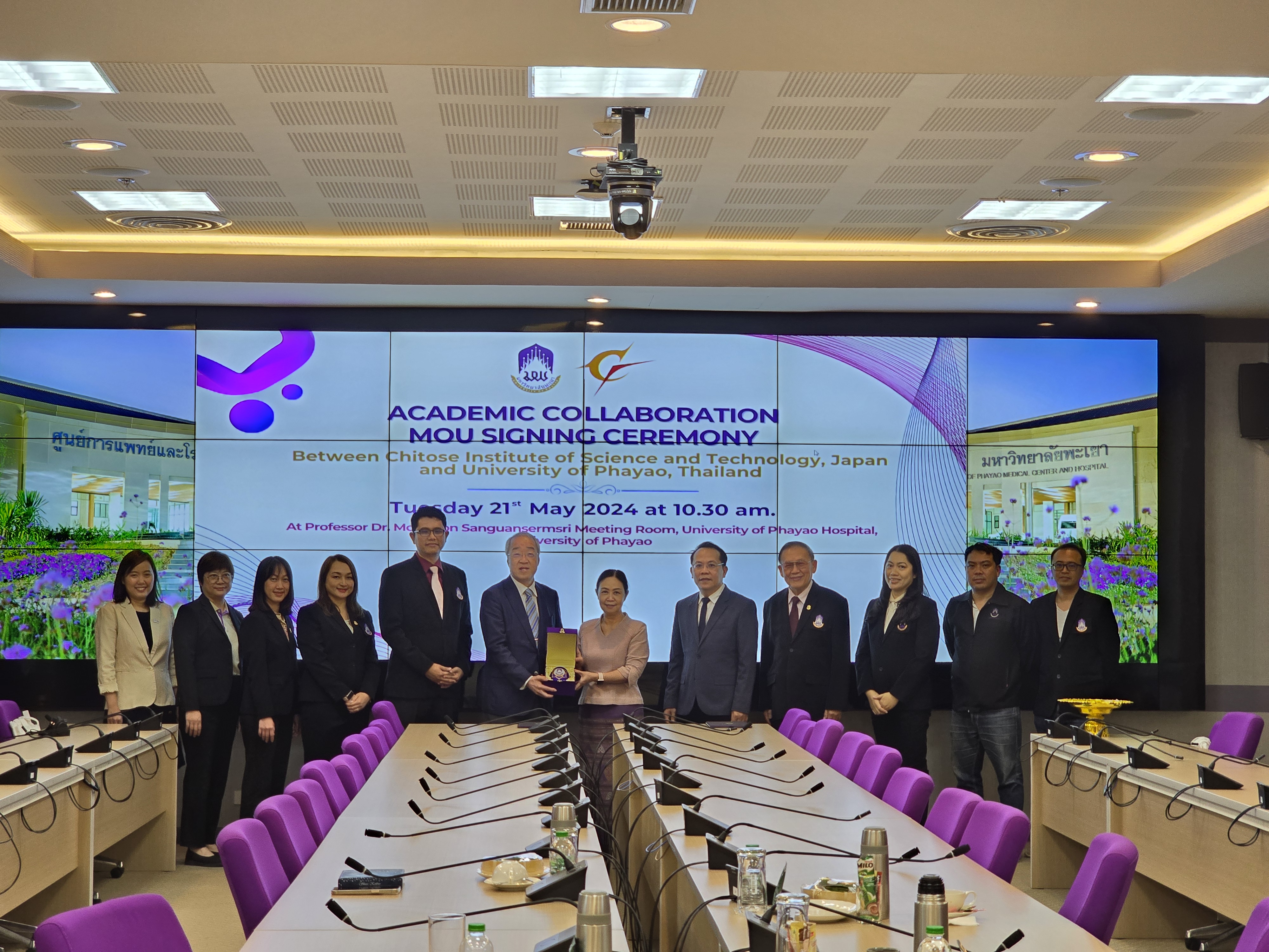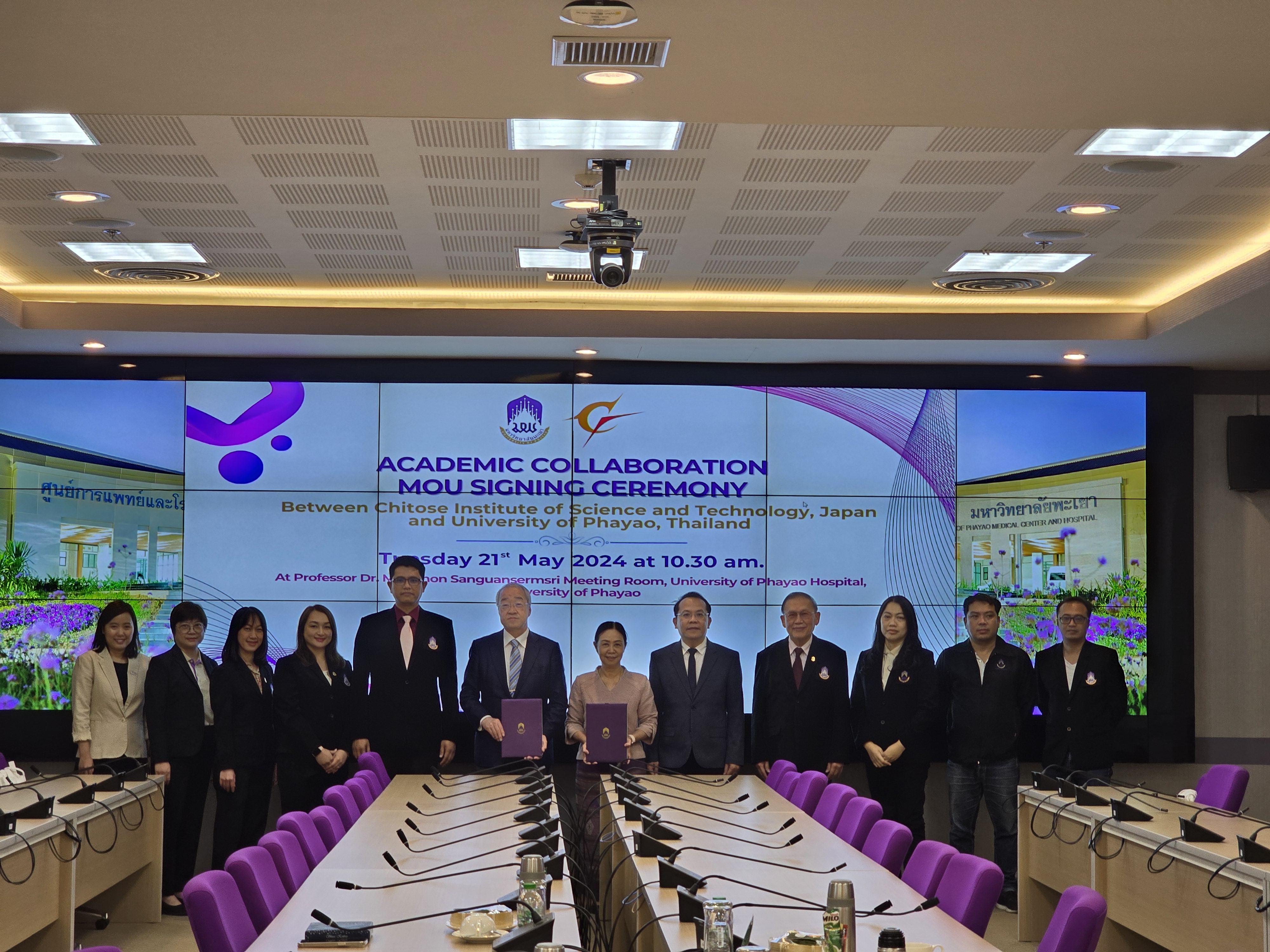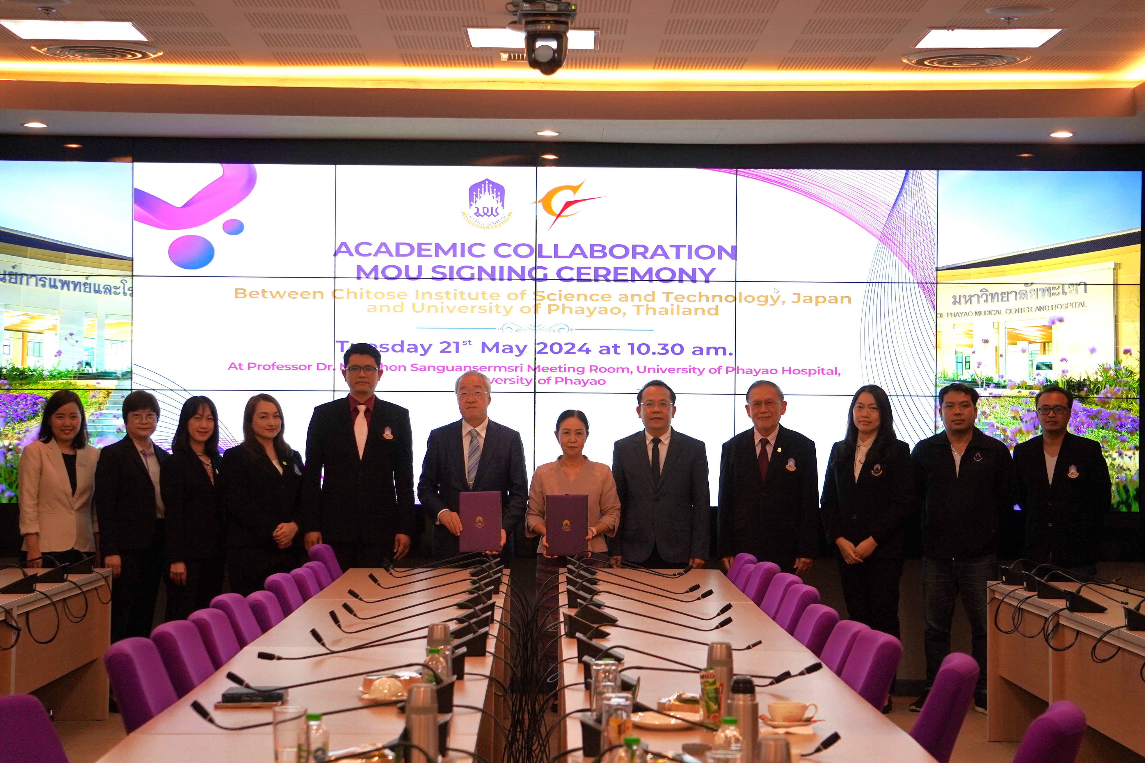 เมื่อวันที่ 21 พฤษภาคม 2567 เวลา 10.30 น. อธิการบดีมหาวิทยาลัยพะเยา รองศาสตราจารย์ ดร.สุภกร พงศบางโพธิ์ และ ศาสตราจารย์ ดร.โยชิคาสึ มิยานางะ อธิการบดีสถาบันวิทยาศาสตร์และเทคโนโลยีชิโตเสะ ประเทศญี่ปุ่น เป็นผู้ลงนามบันทึกข้อตกลงบันทึกความเข้าใจความร่วมมือทางวิชาการ ระหว่าง มหาวิทยาลัยพะเยา และสถาบันวิทยาศาสตร์และเทคโนโลยีชิโตเสะ ประเทศญี่ปุ่น โดยมีรองอธิการบดีฝ่ายวิจัยและนวัตกรรม ศาสตราจารย์ ดร.เสมอ ถาน้อย เป็นพยานในการลงนามบันทึกข้อตกลงทางวิชาการฯ พร้อมด้วยคณบดีคณะเทคโนโลยีสารสนเทศและการสื่อสาร ผู้ช่วยศาสตราจารย์ ดร.พรเทพ โรจนวสุ เป็นผู้กล่าวรายงานถึงวัตถุประสงค์ของการลงนามบันทึกข้อตกลงในครั้งนี้ ณ ห้องประชุมศาสตราจารย์พิเศษ ดร.มณฑล สงวนเสริมศรี โรงพยาบาลมหาวิทยาลัยพะเยาชั้น 2 มหาวิทยาลัยพะเยา โดยการลงนามบันทึกข้อตกลงความร่วมมือทางวิชาการในครั้งนี้ มีวัตถุประสงค์เพื่อขยายความเป็นพันธมิตรและส่งเสริมความร่วมมือในด้านวิชาการและการวิจัย ซึ่งมุ่งเน้นด้านการส่งเสริมให้เกิดการแลกเปลี่ยนคณาจารย์และบุคลากรในคณะ รวมไปถึงการแลกเปลี่ยนนิสิต ข้อมูลและเครื่องมือเครื่องใช้วัสดุอุปกรณ์ที่ใช้ในงานวิจัย พร้อมทั้งดำเนินโครงการวิจัยร่วมกัน เพื่อจัดสัมมนา การประชุมทางวิชาการ และการประชุมอื่นที่เกี่ยวกับประเด็นการวิจัยต่อไปในอนาคต