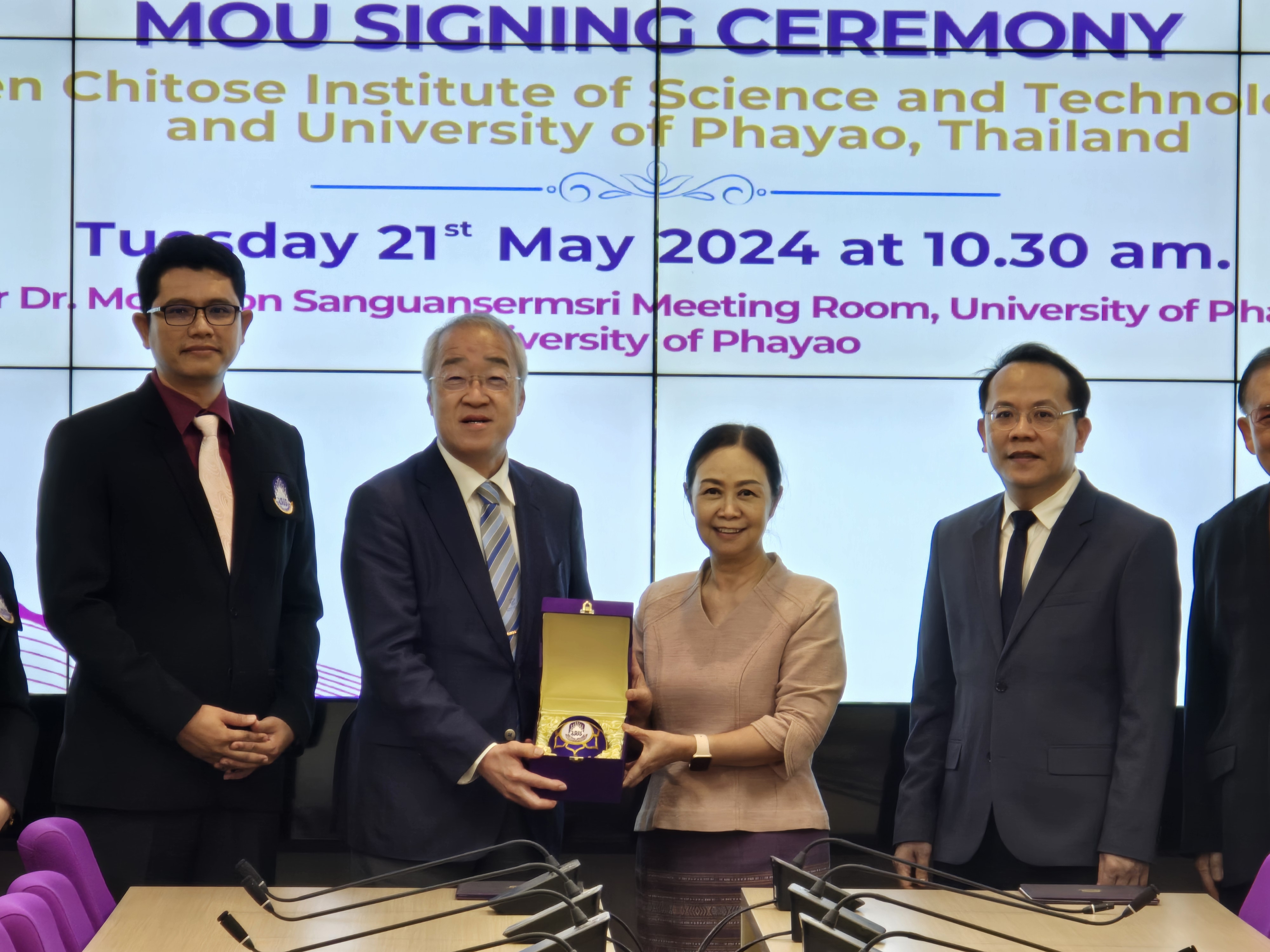 On May 21st, 2014 at 10:30 a.m., the President University of Phayao, Associate Professor Dr. Supakorn Pongsuban, and Professor Yoshikatsu Miyanaga, President of the Chitose Institute of Science and Technology, Japan, signed the Memorandum of Understanding between University of Phayao and the Chitose Institute of Science and Technology, Japan, witnessed by the Vice President for Research and Innovation, Prof. Samur Thano. In addition, the Dean of School of Information and Communication Technology, Assistant Professor Dr.Pornthep Rojanavasu, reports the objectives of this agreement at the Professor Dr. Mondhon Sanguansermsri Meeting Room, 2nd Floor, University of Phayao Hospital.