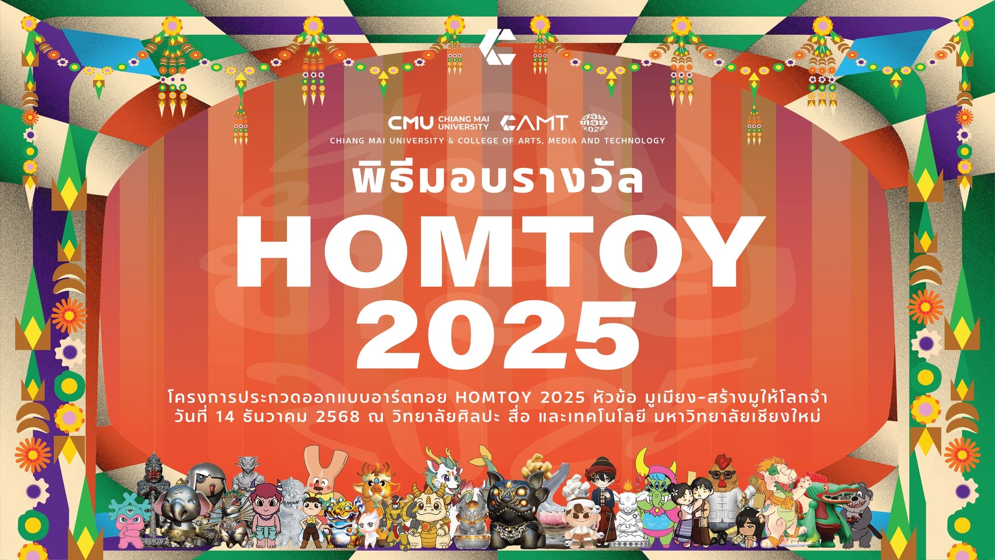 ผู้ช่วยศาสตราจารย์ ดร.ศุลีพร คำชมภู พร้อมด้วย นายพิสิษฐ์ พยุงทรัพย์ และนางสาวอรปวีณ์ สิงหะ อาจารย์และนิสิตสาขาวิชาคอมพิวเตอร์กราฟิกและมัลติมีเดีย ได้รับรางวัล รองชนะเลิศอันดับ 1 จากการประกวด ART TOY ในโครงการ ฮอมทอย (Homtoy) จัดโดยวิทยาลัยศิลปะสื่อและเทคโนโลยี มหาวิทยาลัยเชียงใหม่ ภายใต้หัวข้อ “มูเมียง – สร้างของมูให้โลกจำ”ซึ่งเป็นเวทีสร้างสรรค์ผลงานอาร์ตทอยล้านนาแนวสายมู ที่ผสานความเชื่อ วิถีชีวิต และวัฒนธรรมความเป็นเมืองเหนือ เพื่อนำเสนออัตลักษณ์ “สายมูแบบเมียง” ให้เป็นที่จดจำในระดับสากล