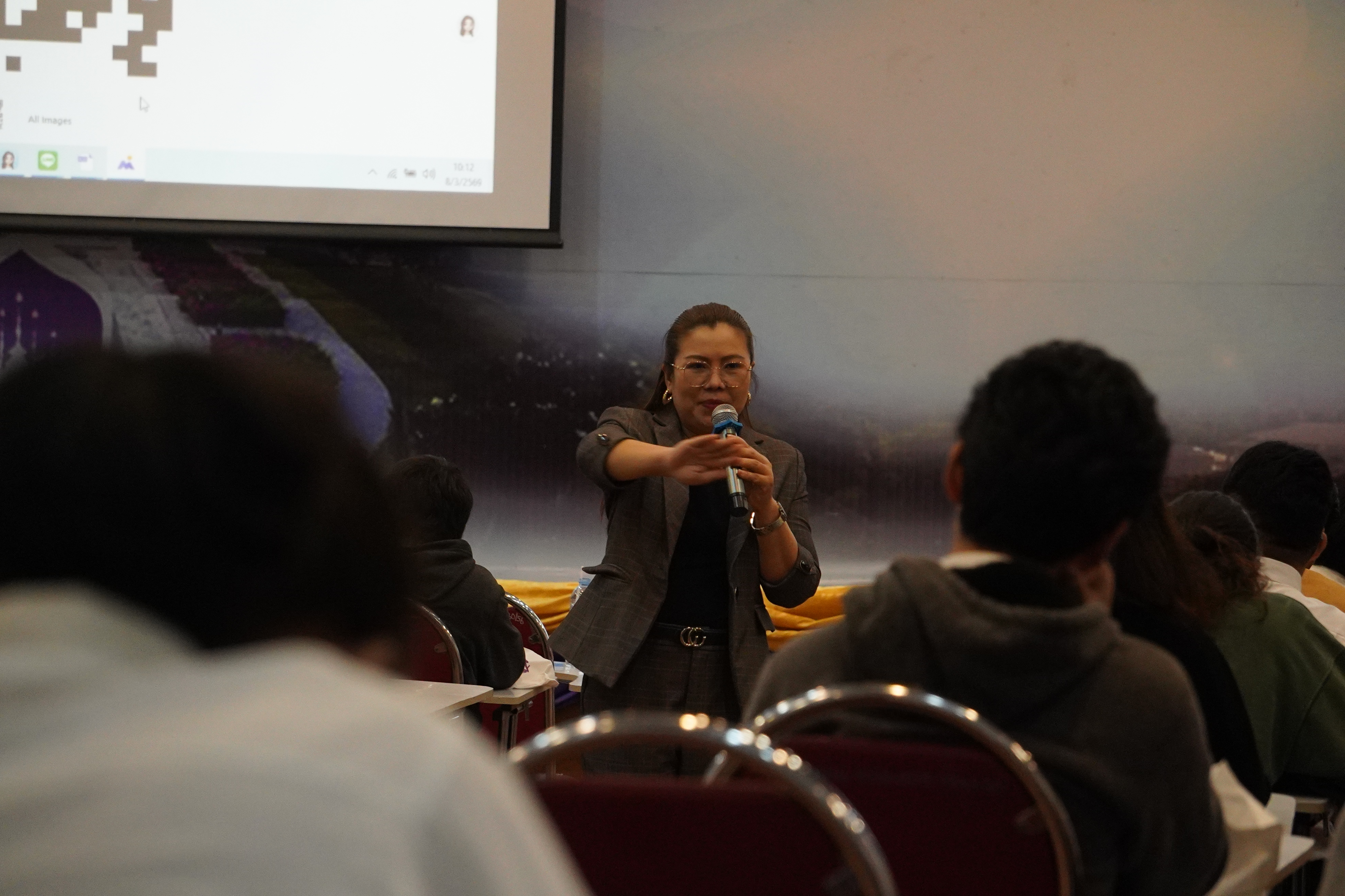 ไฮไลต์สำคัญของกิจกรรม คือ การบรรยายพิเศษเพื่อเตรียมความพร้อมสู่โลกการทำงาน โดยได้รับเกียรติจาก คุณสายสุนี เตชา วิทยากรผู้เชี่ยวชาญด้านการพัฒนาศักยภาพบุคลากรและการเตรียมความพร้อมสู่ตลาดแรงงาน จากบริษัท JOBTOPGUN Thailand ซึ่งเป็นองค์กรชั้นนำด้านการจัดหางานและพัฒนาเส้นทางอาชีพของคนรุ่นใหม่ ซึ่งได้ถ่ายทอดความรู้และประสบการณ์ในหัวข้อ “เตรียมความพร้อมนักศึกษาสู่ตลาดแรงงานยุค AI” และ “การเตรียมความพร้อมการสมัครงานของนิสิตจบใหม่” โดยเน้นการพัฒนาทักษะสำคัญสำหรับการทำงานในยุคปัจจุบัน ทั้งเทคนิคการเขียน Resume การเตรียมตัวสัมภาษณ์งาน รวมถึงการพัฒนา Soft Skills ที่จำเป็นต่อการทำงานในองค์กร