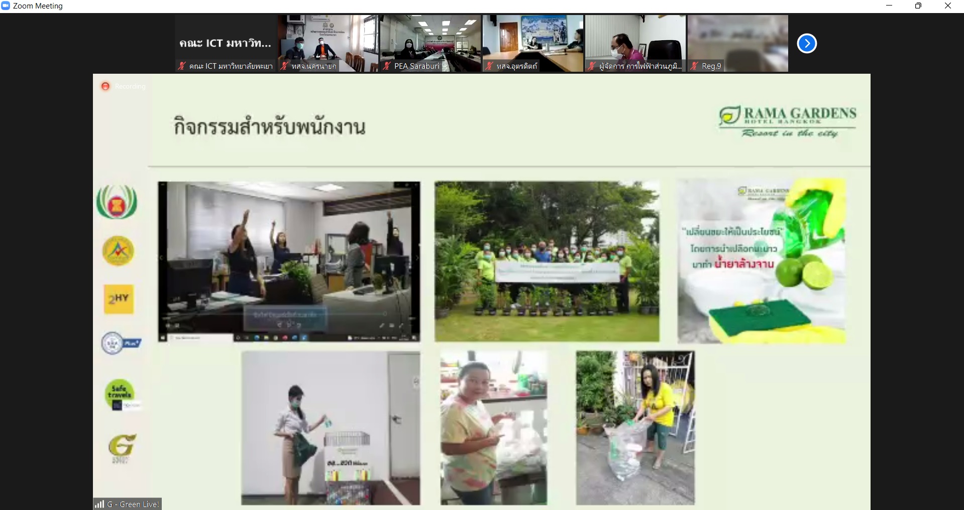 เมื่อวันที่ 20 กรกฎาคม 2565 คณะเทคโนโลยีสารสนเทศและการสื่อสาร เข้าร่วมพิธีประกาศ เกียรติคุณตราสัญลักษณ์ G – Green ระดับประเทศ Green For Life ON EARTH โดยกรมส่งเสริมคุณภาพสิ่งแวดล้อม ผ่านระบบ Online ด้วย Application ZOOM โดยได้รับเกียรติจาก นายอนุชา สะสมทรัพย์ ผู้ช่วยรัฐมนตรีประจำกระทรวง ทรัพยากรธรรมชาติและสิ่งแวดล้อม เป็นประธานในพิธี