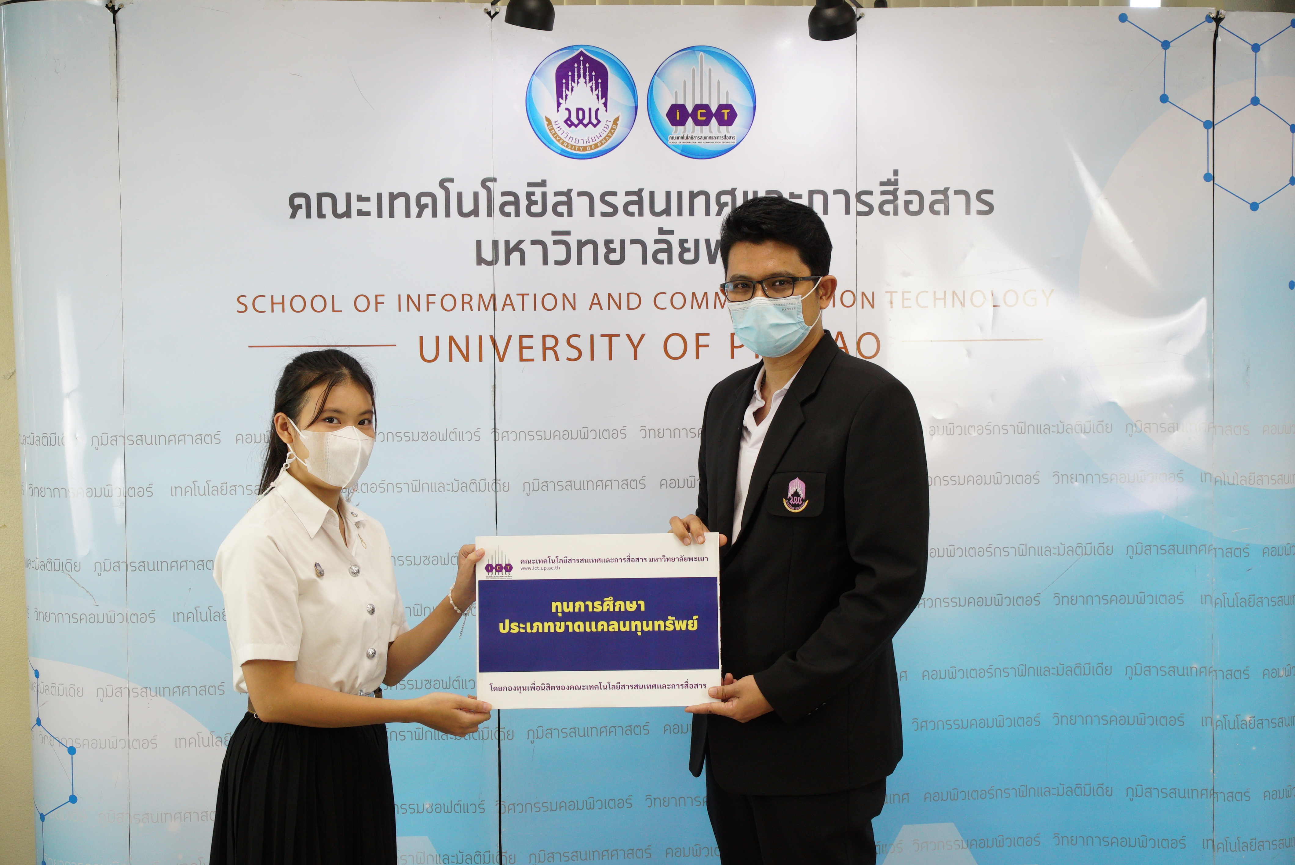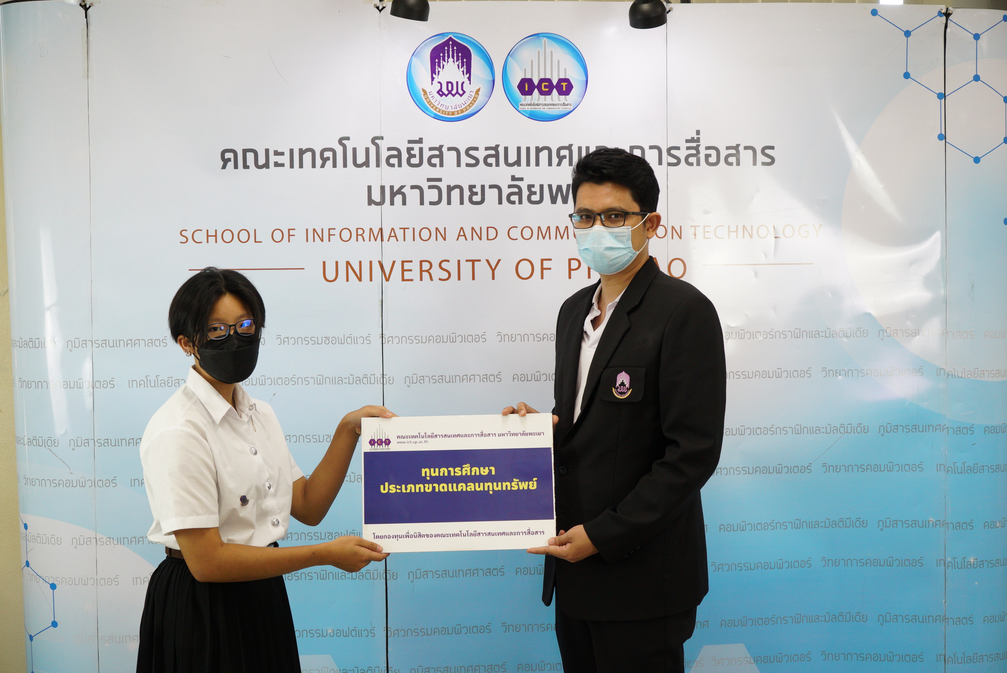 เมื่อวันที่ 2 สิงหาคม 2565 ณ ห้อง ICT 1107 คณะเทคโนโลยีสารสนเทศและการสื่อสาร มหาวิทยาลัยพะเยา จัดพิธีมอบทุนการศึกษาจากกองทุนเพื่อนิสิตของคณะฯ เพื่อเป็นค่าใช้จ่ายสำหรับทุนการศึกษาของนิสิต และเป็นค่าใช้จ่ายสำหรับช่วยเหลือนิสิตที่ประสบภัยพิบัติหรือความเดือดร้อน ซึ่งนิสิตที่ได้รับทุนจะต้องมีคุณสมบัติทางด้านความประพฤติเรียบร้อย ขาดแคลนทุนทรัพย์ในการศึกษา หรือครอบครัวประสบปัญหาการเงิน